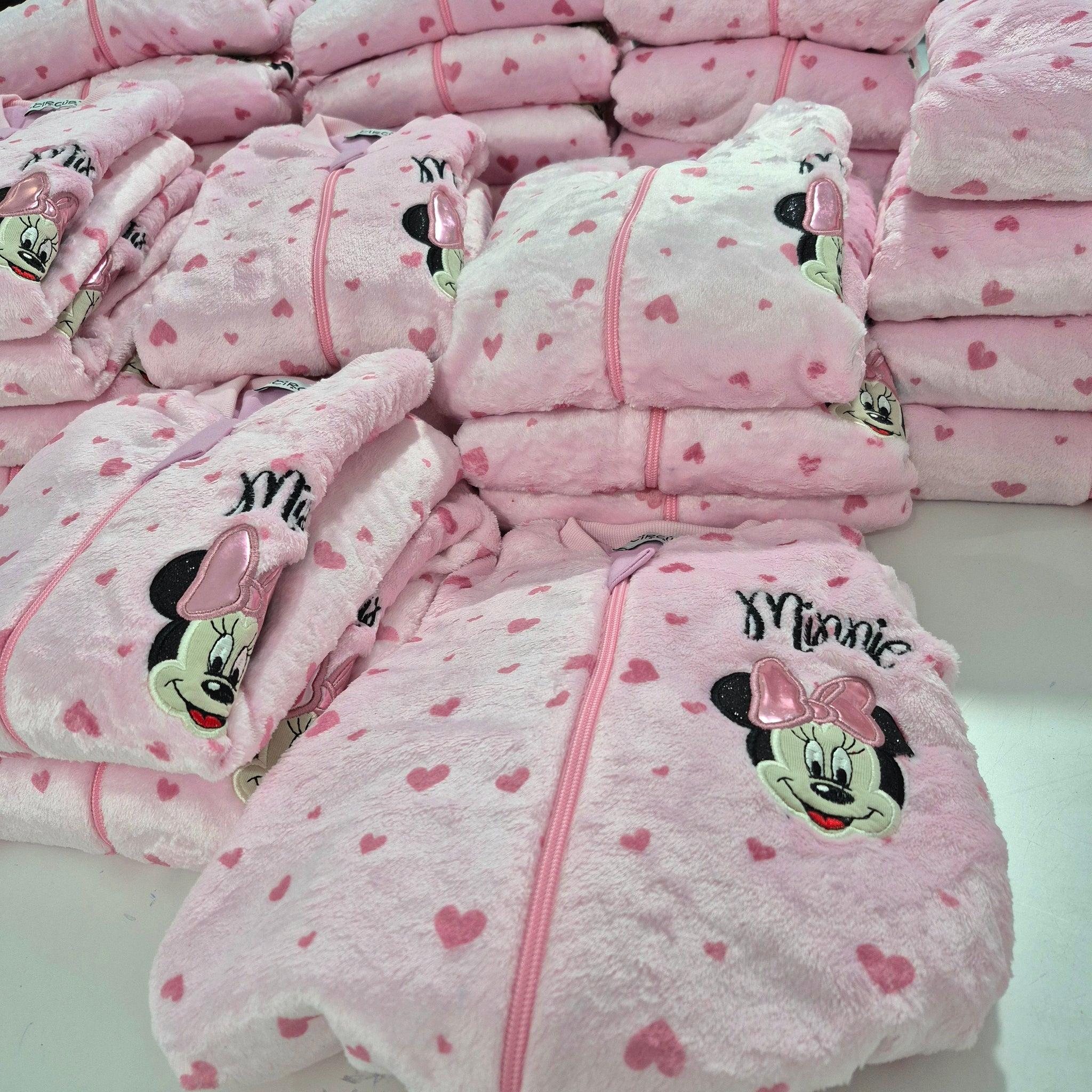 Keep your little one snug and cheerful with our Baby Girl's Minnie Fleece Sleeping Bag. Crafted from soft fleece and lined with a gentle cotton blend in sizes 12m, 18m, 2-4 yrs. it promises cozy warmth and all-night comfort. Designed with cuffs on sleeves and feet, this sleeping bag ensures a comfy fit that stays in place, perfect for playful dreams from 12 months up to 4-6 years. Let bedtime be both fun and warm!