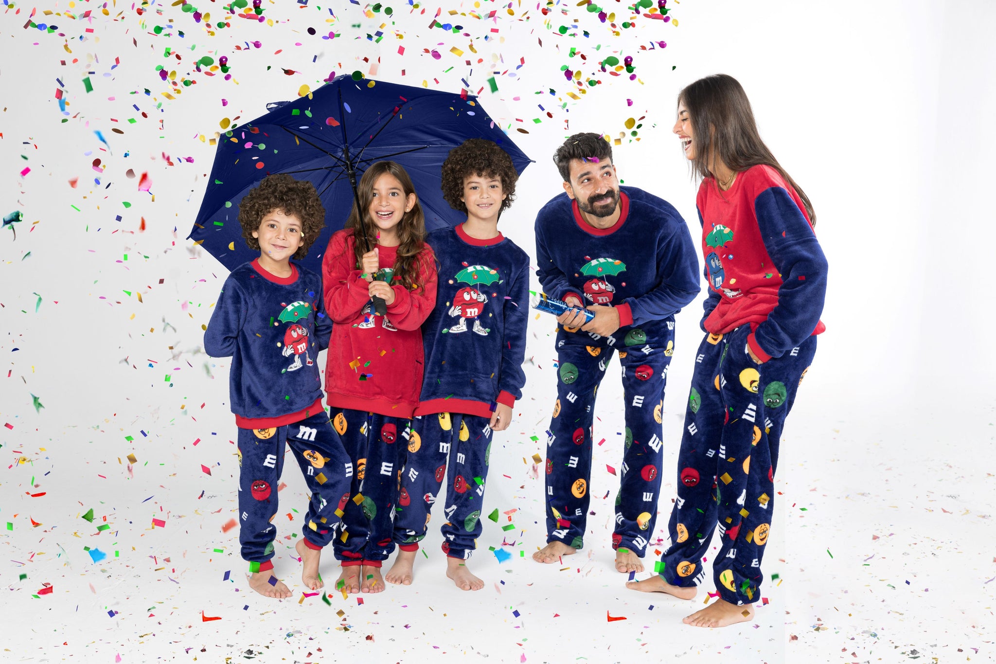 Snuggle up with your family in these sweet matching pajamas, featuring a cozy winter fleece and playful M&M applique. Whether you're lounging at home or snacking on some M&Ms, these pajamas are perfect for a fun and comfy night in. (M&Ms not included!)