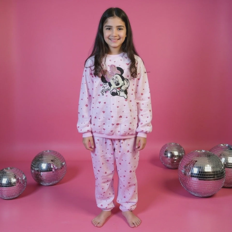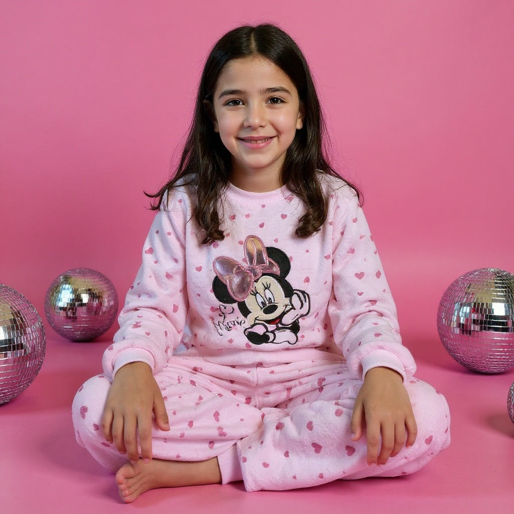 Keep bedtime magical with these pink fleece pyjamas adorned with cute hearts and a charming Minnie Mouse applique. Super cozy and soft, they’re perfect for snuggling up, and the matching design lets girls and mums share a fun, playful look at home.
