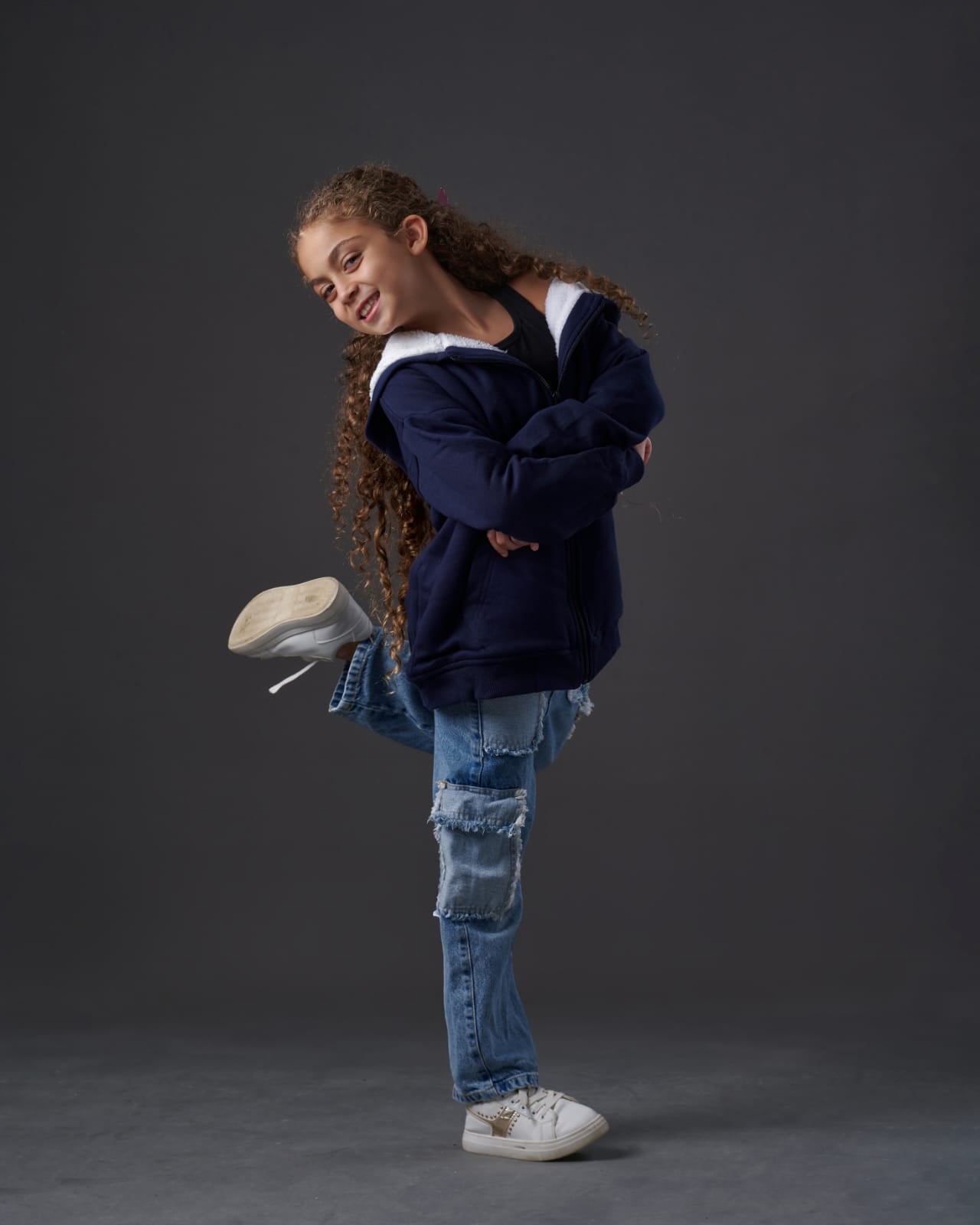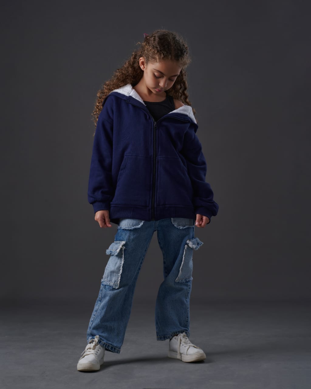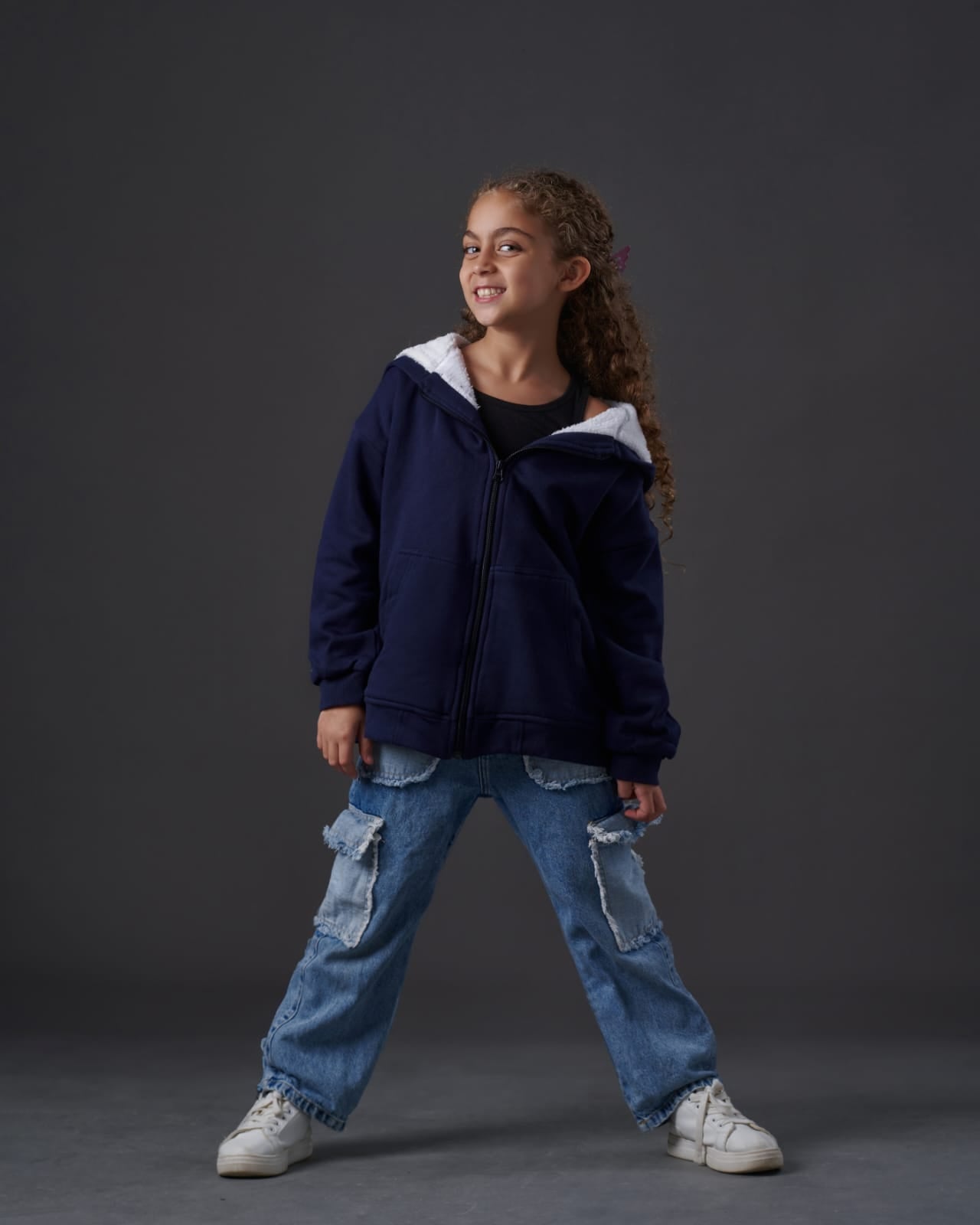 This jacket is perfect for keeping your child warm during the colder months. The navy color and fur lining add a stylish touch to the classic school jacket design. With heavy and warm cotton material, convenient front pockets, and an imported zip, this jacket offers both style and comfort. Available in sizes for children aged 7-14 years old.