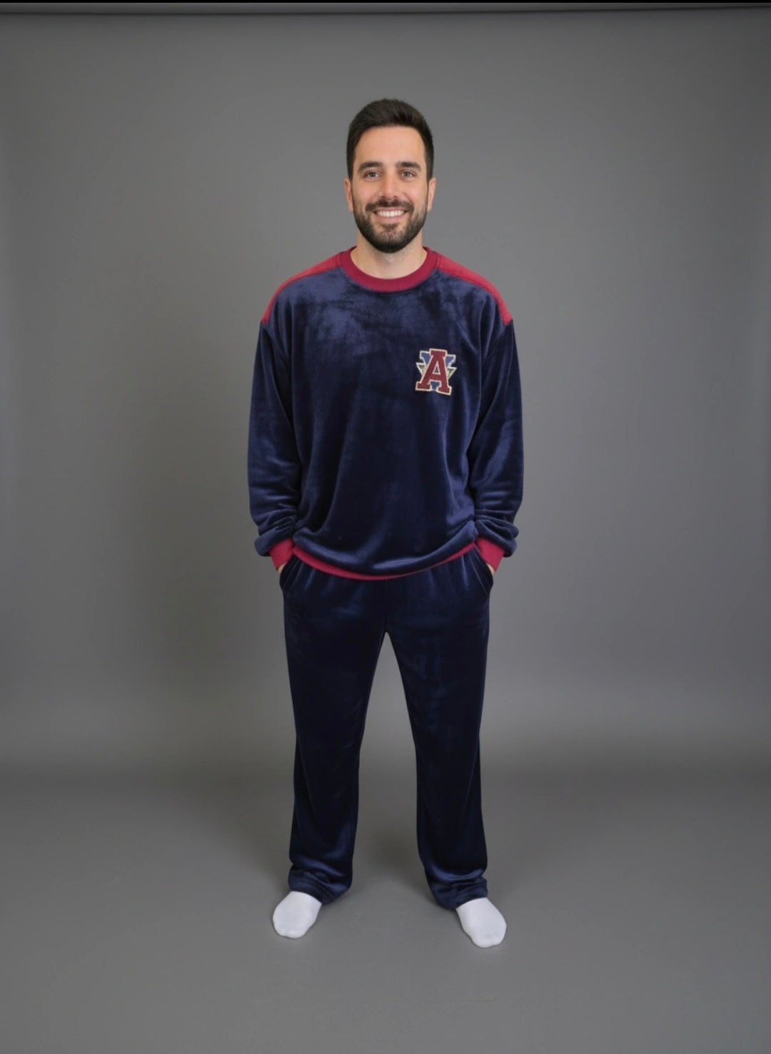 Stay comfy and stylish with these Men's Letter A Fleece Pyjamas, perfect for you and your little one. Made from heavy, cozy fleece, they keep you warm during those chilly nights. The classic design gets a trendy twist with a bold embroidered letter "A" on the side, plus snug cuffs on the sleeves for a perfect fit. Ideal for father and son matching moments, these pyjamas bring warmth and fun to your bedtime routine.