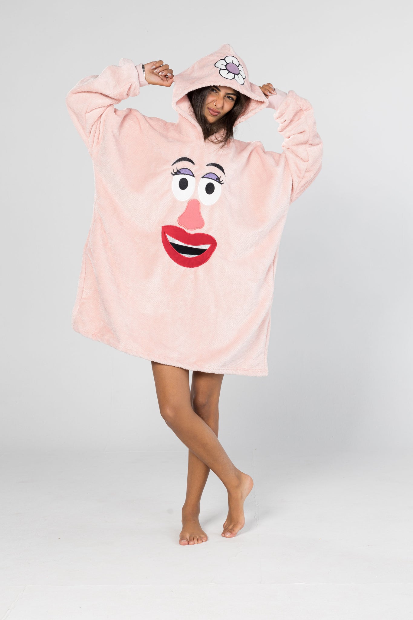 Get cozy with your spud-mate in the SNUDDIE wearable blanket! This oversized fleece blanket is perfect for cuddling up with your partner and enjoying some quality time. One size fits all, so you can both stay warm and snuggly. Don't be a couch potato, snuggle up in the Mrs Potatoe SNUDDIE!