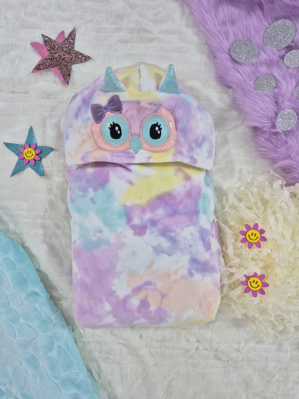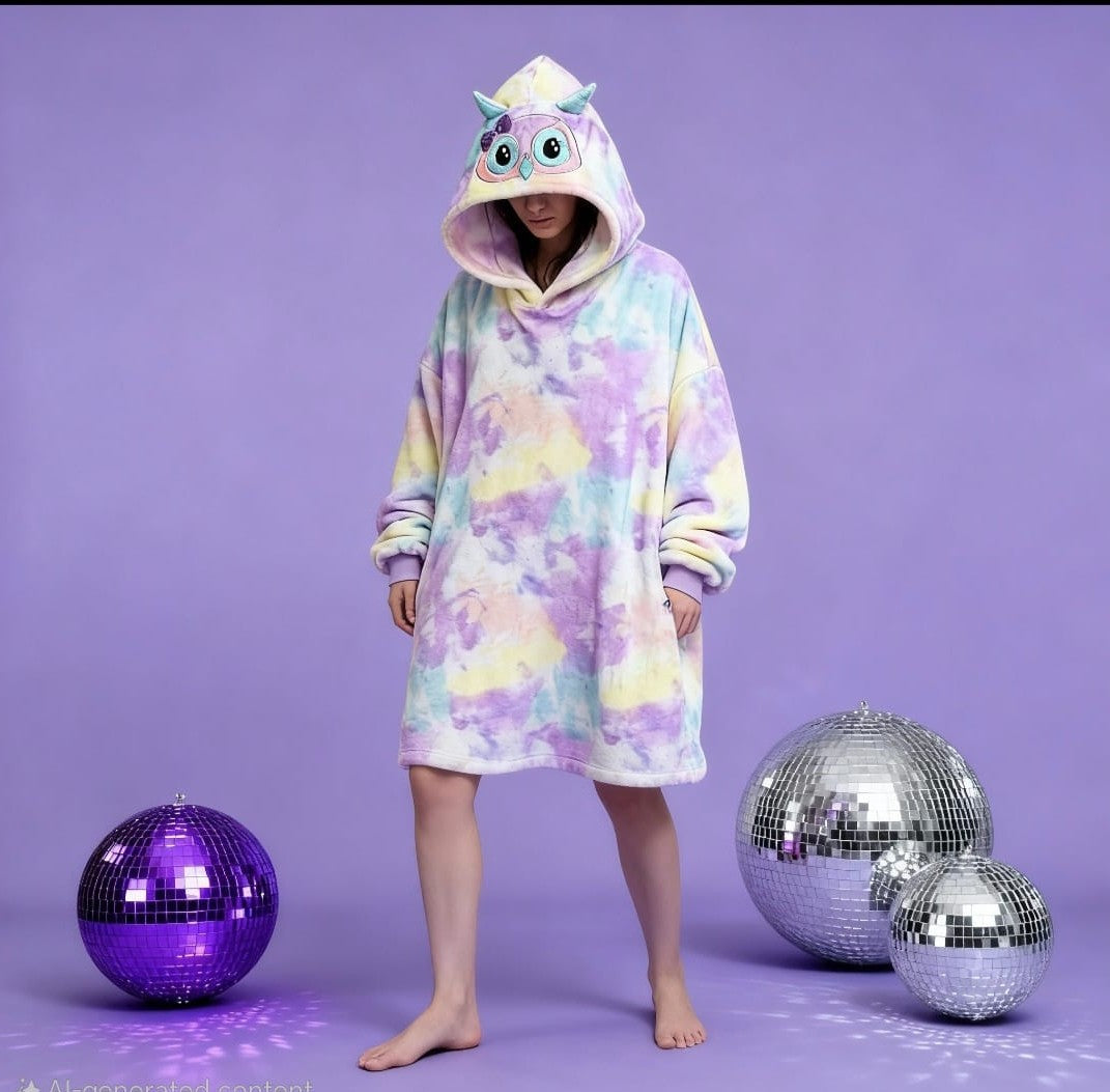 Wrap yourself in cozy comfort with our Snuddie Tie Dye Owl wearable blanket. Featuring a playful owl applique with ears on the hood, trendy tie-dye colors, and convenient side pockets for your essentials, it’s perfect for lounging in style. The oversized fit and cuffed sleeves keep you snug, while one size fits all makes it an easy, fun choice for everyone.