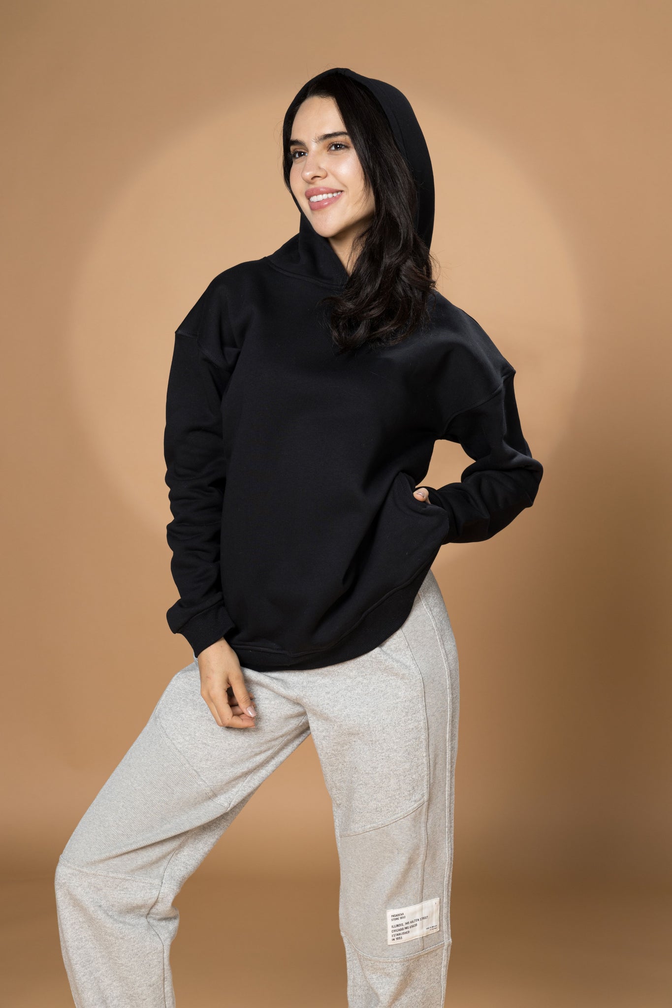 Elevate your style game with our black hoodie. Made with heavy cotton, it's perfect for any season. The versatile basic design is a must-have for your capsule wardrobe, while the side pocket adds functionality. Available in sizes S-XL. (Warning: you may never want to take it off!)