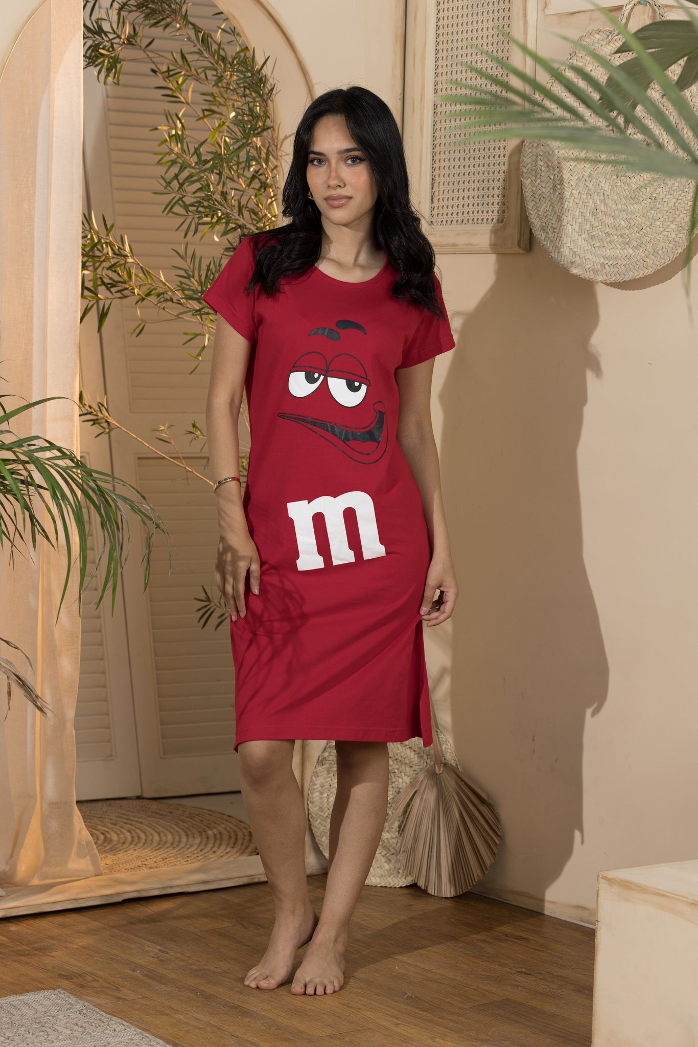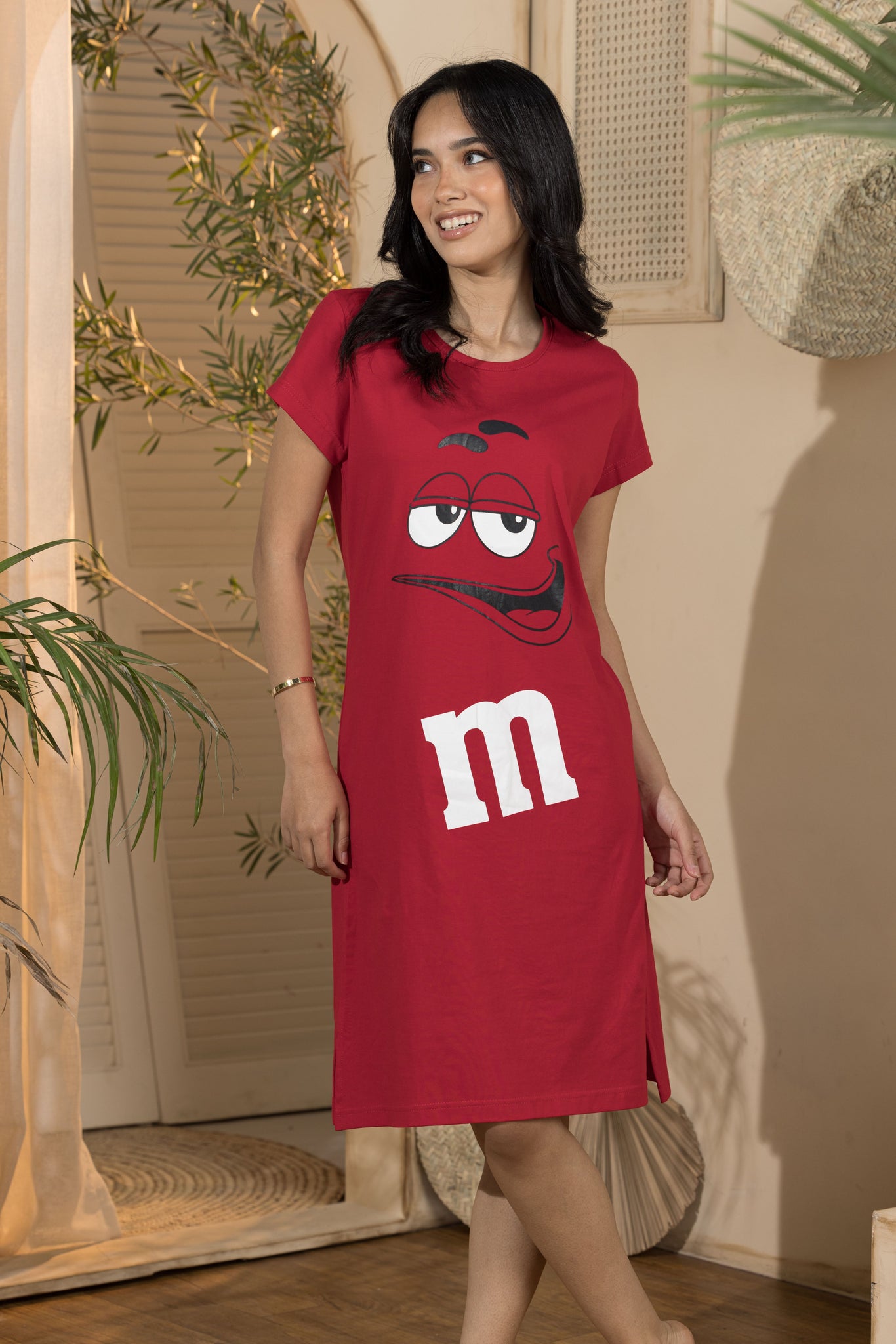 Stay comfy and cute all night long with our Women's Nightdress - M&Ms edition. Made with soft cotton, this playful nightdress features a fun m&ms design and hits just above the knee for a flirty touch. Available in sizes: S.M.L.Xl.. Sweet dreams guaranteed!